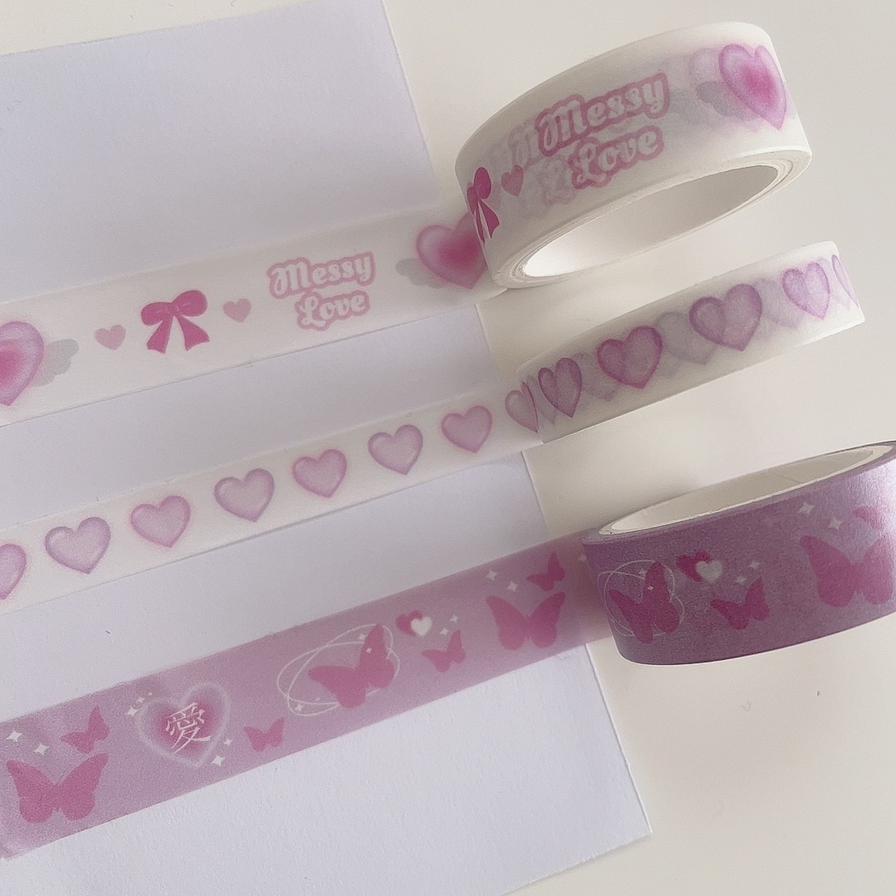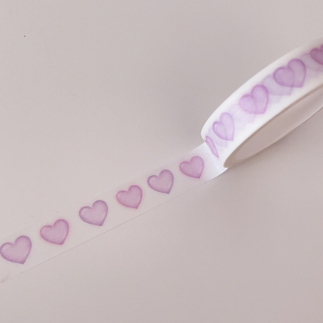 ピンクと紫の2色が並んだキャンディのようなハートのテープに仕上がりました。細いので手帳やお好きな箇所を可愛くデコれます✨